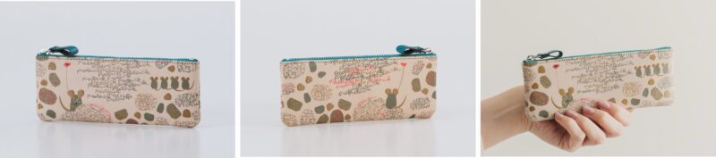 なかまののねずみたちの後ろ姿も可愛くあしらわれた薄型のペンケース。PCや資料でかさばる通勤・通学バッグにもコンパクトに収まります。