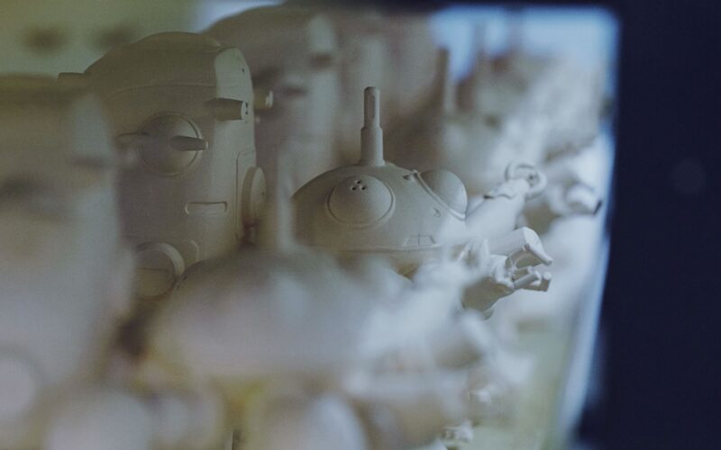 タチコマの特徴的なフォルムを細部まで磁器で再現するために、一から3Dモデルを設計しています。磁器は焼成で縮み、歪み、わずかな厚みの差で破損にもつながります。タチコマの複雑な造形を成立させるには、デジタル造形の精密さと、焼き物特有の“変化”を読み込む経験値の両方が欠かせません。指や関節の太さ、爪の強度、各パーツの収縮率まで細かく検証し、焼成後に最も美しく、かつ長く愛蔵できる姿を追求。