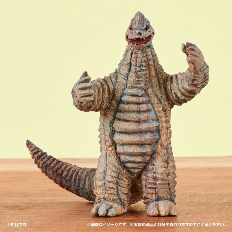 現在、ガシャポンオンラインで販売されている本商品は、ウルトラマンシリーズに登場する人気の怪獣たちを、木彫り風のテイストで再現したフィギュアです。動物たちのありのままの姿を木彫りにする「肖像彫刻」を得意とする、はしもとみおさんが彫った怪獣たちの彫刻を原型として作られています。