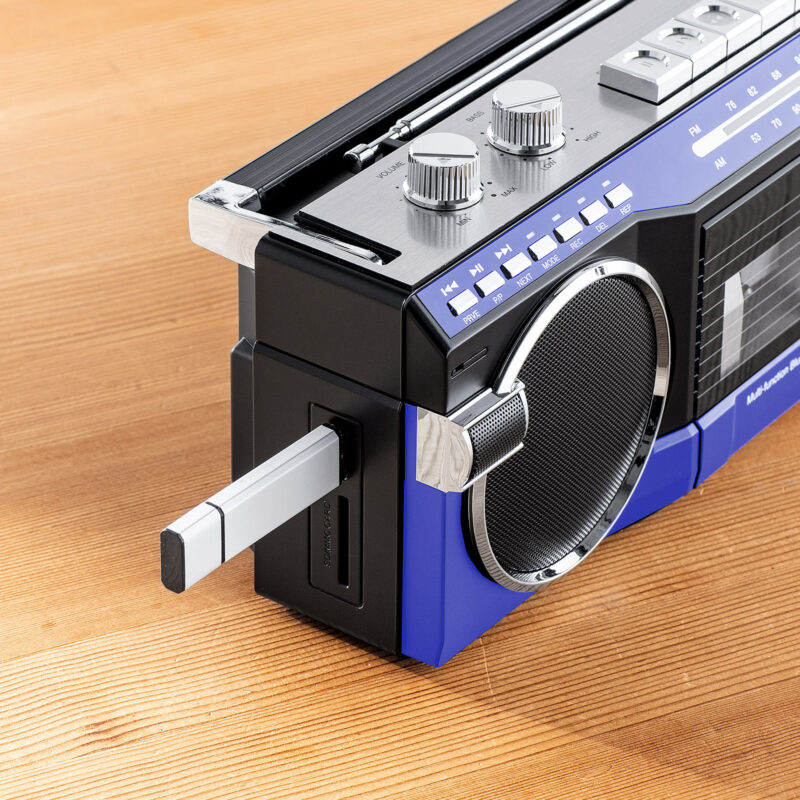 見た目はレトロですが、機能は最新!カセットテープやAM/FMラジオを楽しめるだけでなく、Bluetooth接続によりワイヤレススピーカーとしても活躍します。スマートフォンの音楽やポッドキャストも、手軽に再生可能。