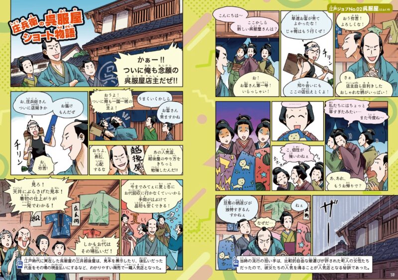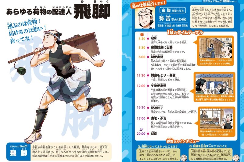 各職業に4〜6ページの本格マンガを収録。物語を読み進めることで、当時の仕事の様子や人々の苦労を、まるで自分も体験しているかのように自然と学べます。