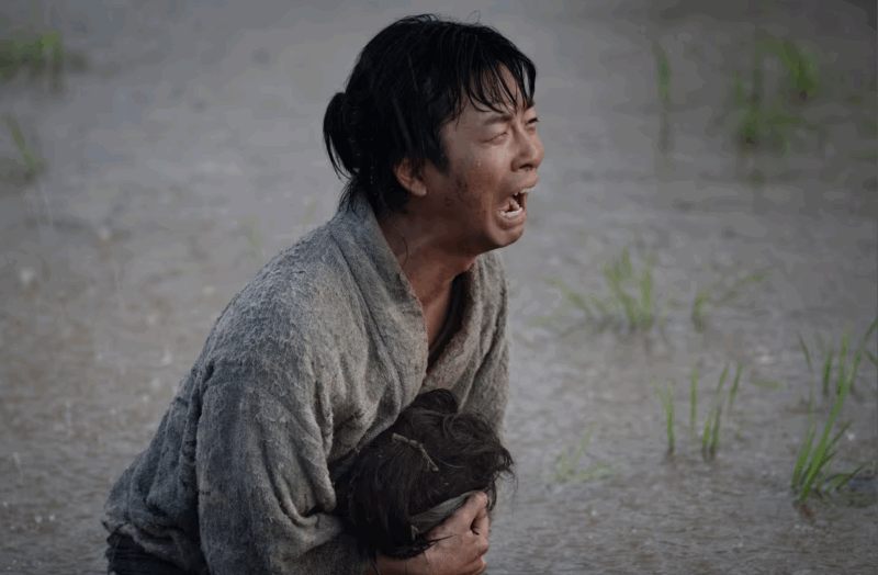 「なんなんじゃ、これは。わしらが何をした!!」と、斬り落とされた新吉の首を抱き絶叫する小一郎。