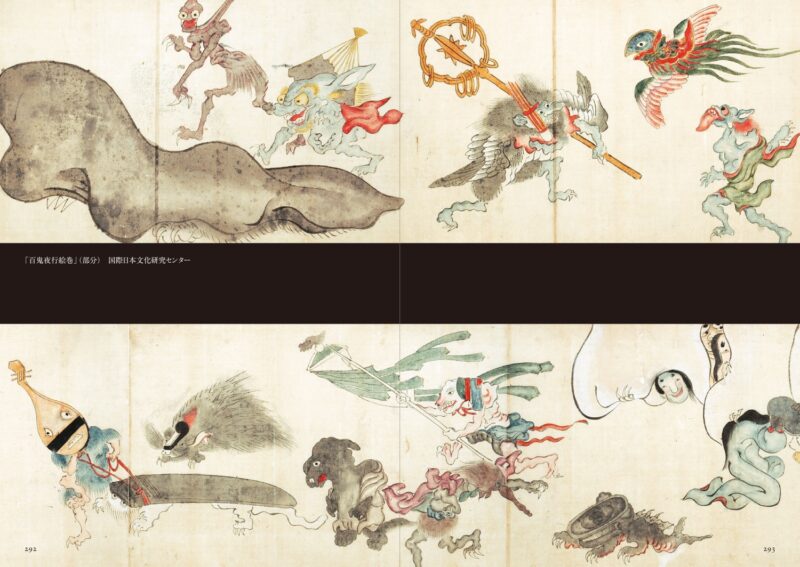 本書は、河鍋暁斎、伊藤若冲、歌川国芳らさまざまな絵師が描いた神獣霊獣、鬼や民間伝承の神々・付喪神・あやかしの類いをバラエティ豊かに紹介する図案集です。