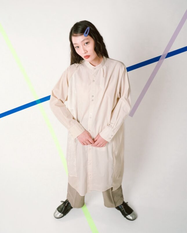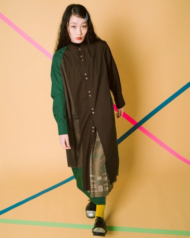 『 26AW – ANGLES – 』今季のコレクションは、ワンピース/シャツなど 全5型(各2~3色)、で構成されています。オリジナルの播州織ジャカードは、フリンジカット技法や高密度製織など、テキスタイル技術を突き詰めたモノづくりを行います。