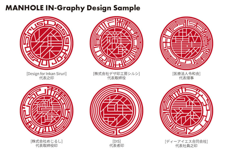 都市の中にあるマンホールが持つ装飾性と機能性、その両方の魅力をタイポグラフィで再構成した「マンホール印グラフィー」で、他社とは違った個性的でインパクトのある法人印鑑を作ってみてはいかが?
