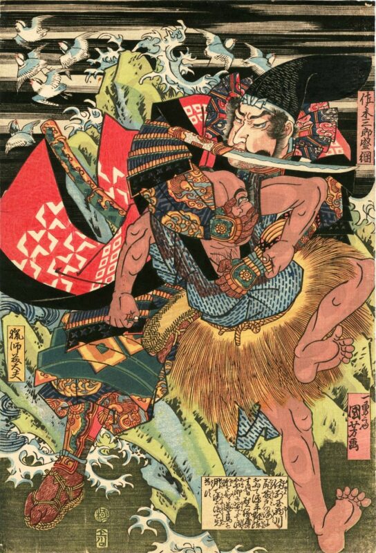 そこで佐々木盛綱は、地元の漁夫から馬で渡れる浅瀬ができる時間と場所を聞き出し案内させます。けれども、その情報が漏れることを防ぐため、その漁夫を刺し殺してしまうのでした。