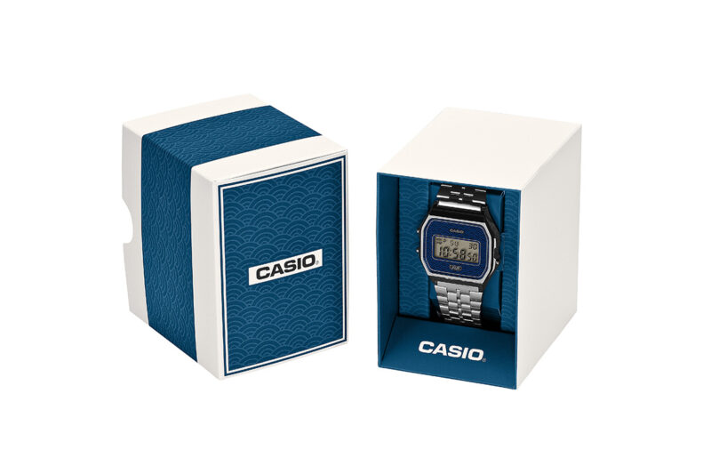 本製品は、日本の美意識をさりげなく息づかせた、メイドインジャパンがテーマのA159です。山形カシオで製造されたA159をベースに、フェイスには伝統文様「青海波」をあしらっています。