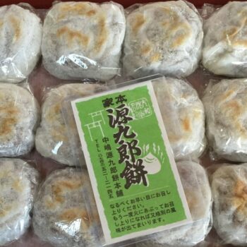 「薬園八幡神社」を過ぎると、左手に「中嶋源九郎餅本舗」が現れます。郡山の和菓子といえば「本家菊屋」の御城之口餅が有名ですが、源九郎餅もまた、地元で長く愛されてきた名物。「源九郎稲荷神社」参拝の折には、ぜひ味わっていただきたい甘味です。