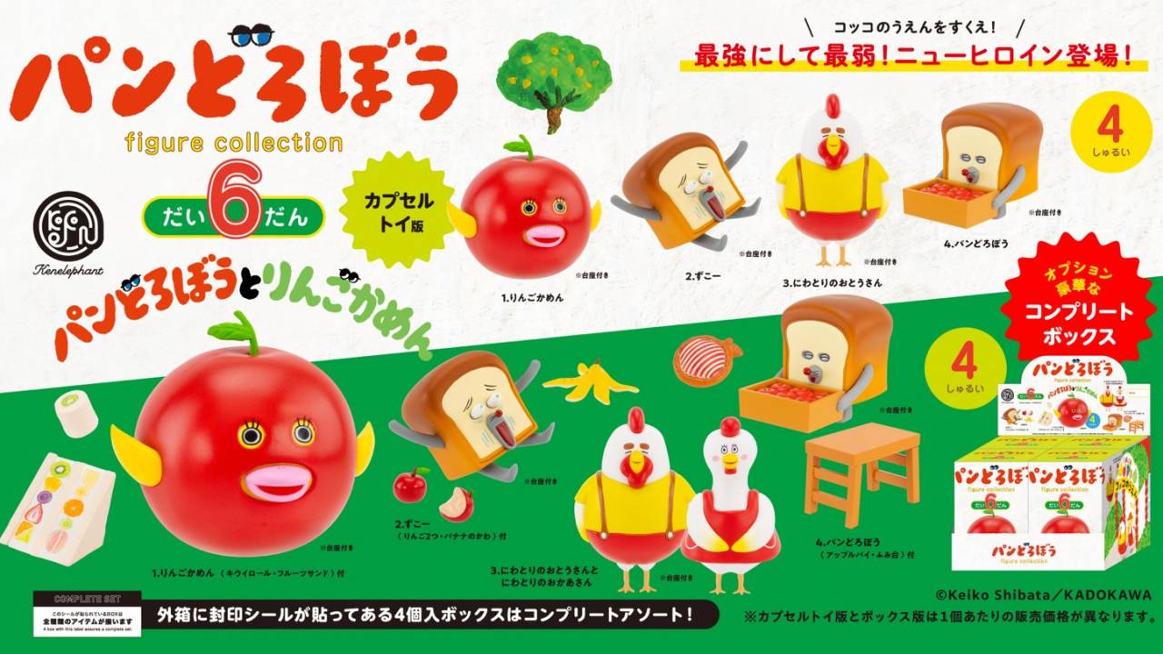 第6弾では、「パンどろぼう」6作目となる絵本『パンどろぼうとりんごかめん』より、“最強にして最弱のたよれる(?)ニューヒロイン”りんごかめんをはじめ、印象的なシーンをそのまま切り取ったような造形で、物語の世界観をより立体的に再現しています。