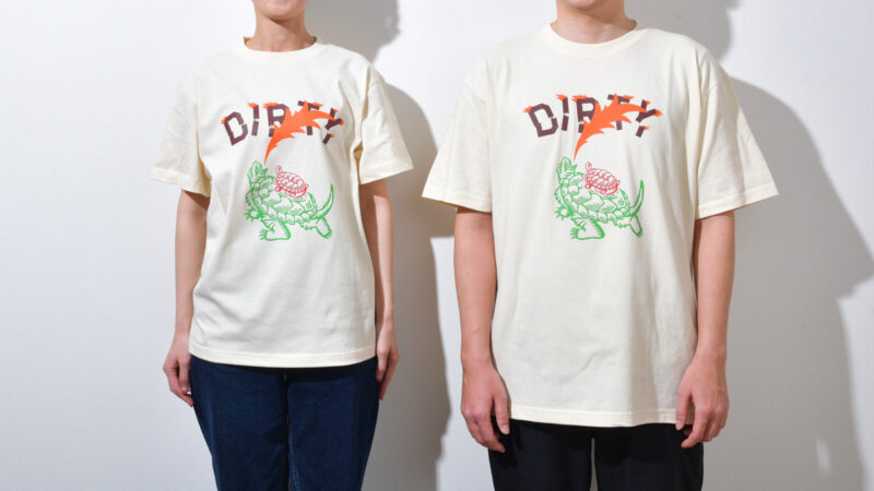 数々の広告賞を受賞し、独自の感性で注目を集める、株式会社SAKAE BLUEの榮良太氏がデザインを担当。ガメラの上に亀の子束子のシンボルロゴである「亀」が乗り、共に「DIRTY」という文字を攻撃している力強いグラフィックが特徴です。