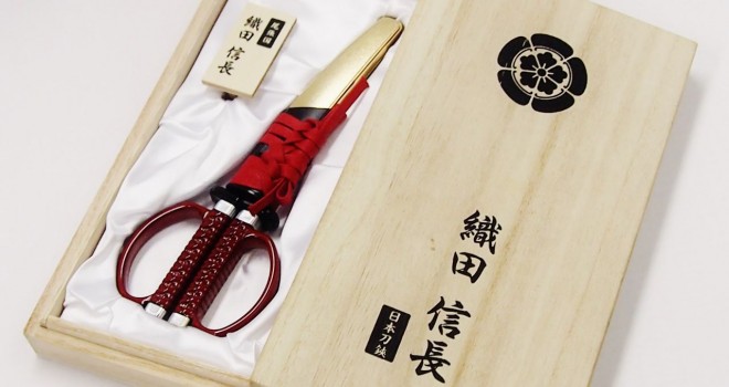 そして今回発表されたのは織田信長が愛刀していたとされる日本刀「へし切り長谷部」がモチーフの日本刀はさみなのです。日本刀はさみ、織田信長モデルがこちら。