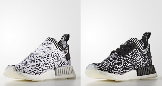 カラーはブラックをベースにしたものとホワイトをベースにした2種類での展開。どちらもモノクロカラーで、ミニマル感溢れるNMDのシルエットにも合っています。