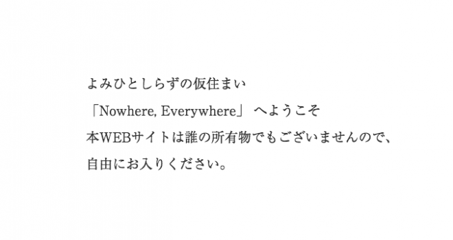 仏教思想からインスピレーションを受けて作品制作をする 私あるいは私たち よみひとしらず は、この度、世間の流れから浮いた現実味がないコンテンツを共有するWEBサイト「Nowhere, Everywhere」を公開しました。