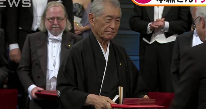 日本時間の11日未明に、ノーベル医学・生理学賞の授賞式で京都大学の本庶佑特別教授が、紋付き袴の着物姿でスウェーデンのカール16世グスタフ国王から賞状、メダルを受け取りました。