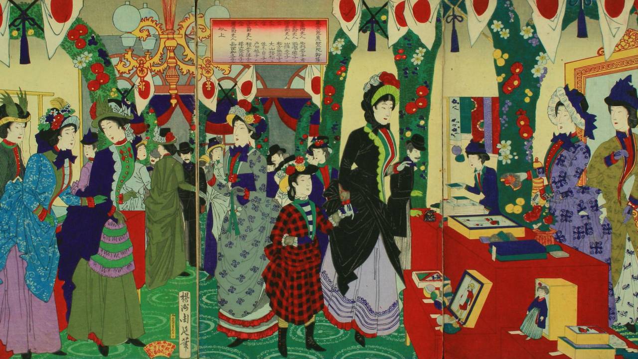 「於鹿鳴館貴婦人慈善会之図」揚洲周延 画