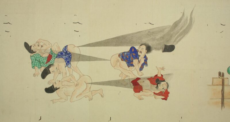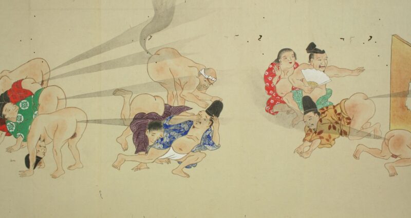 狂気的にくだらない笑!オナラを武器に真剣バトルを繰り広げる江戸時代の「放屁合戦絵巻」がアホすぎて愛おしい