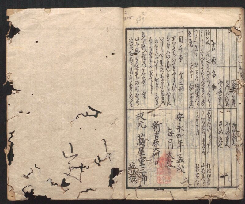 1775(安永4)年に出版された吉原細見「籬の花」。